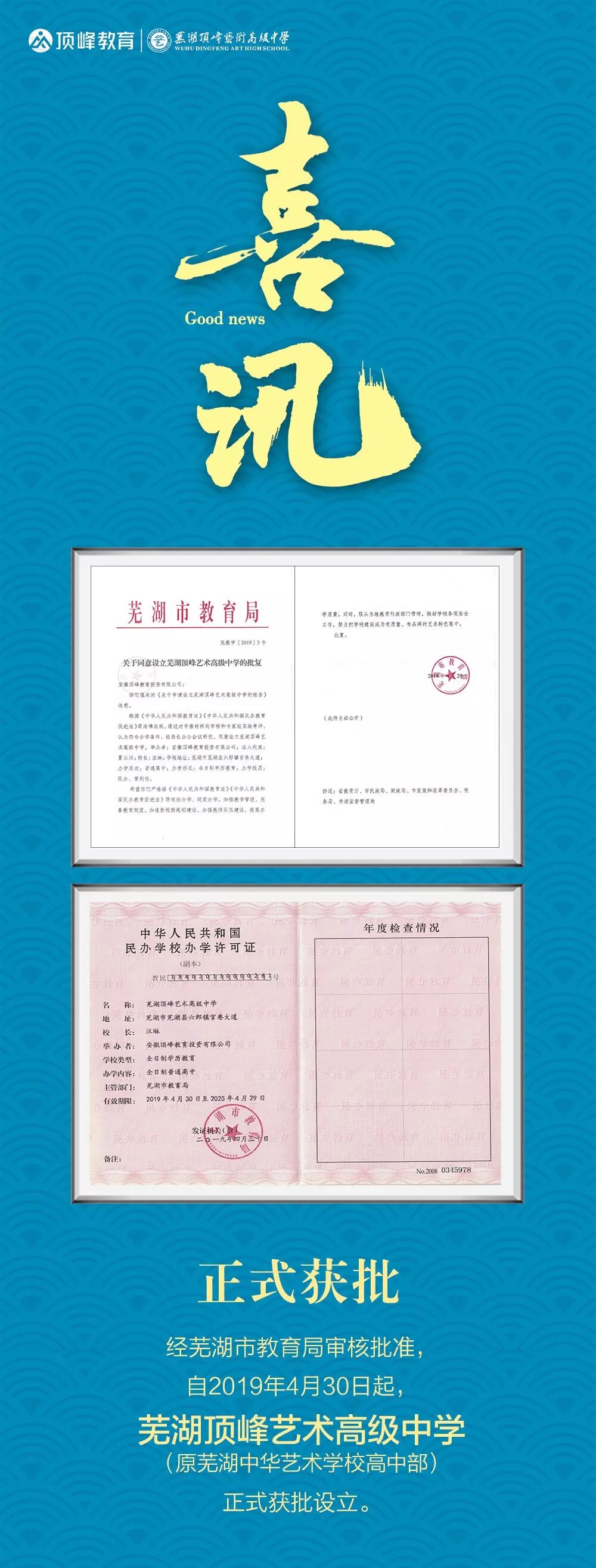 喜訊 | 蕪湖頂峰藝術(shù)高級(jí)中學(xué)正式獲批設(shè)立